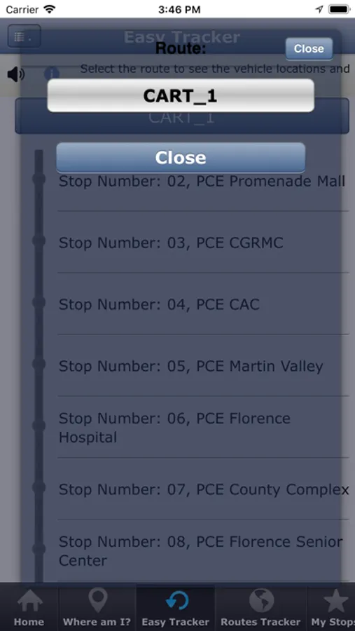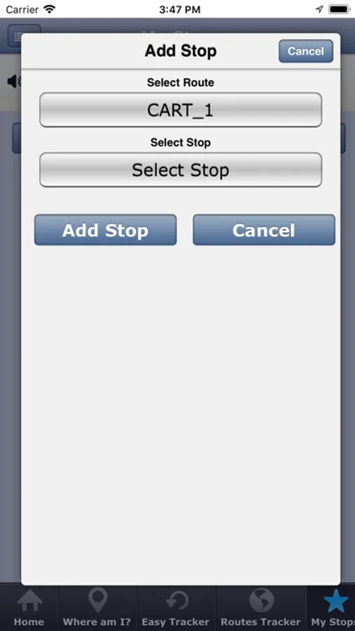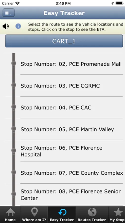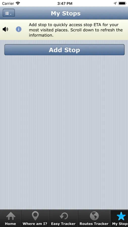Note: If a Stop or Route is not near your location the system will guide you by giving you Walking Directions on how to reach your nearest Stop or Route. (you will see the Line to Follow on the Maps)