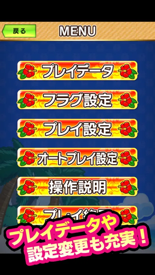 設定値の変更、ボーナスフラグ強制、ウェイトタイムカット、オートプレイなど、便利な機能を多数搭載しています。