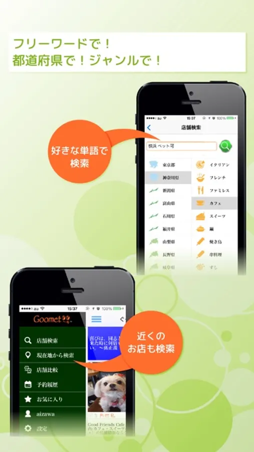 「フリーワード」「都道府県」「飲食のジャンル」であなたのお望みのお店を絞り込みます。
