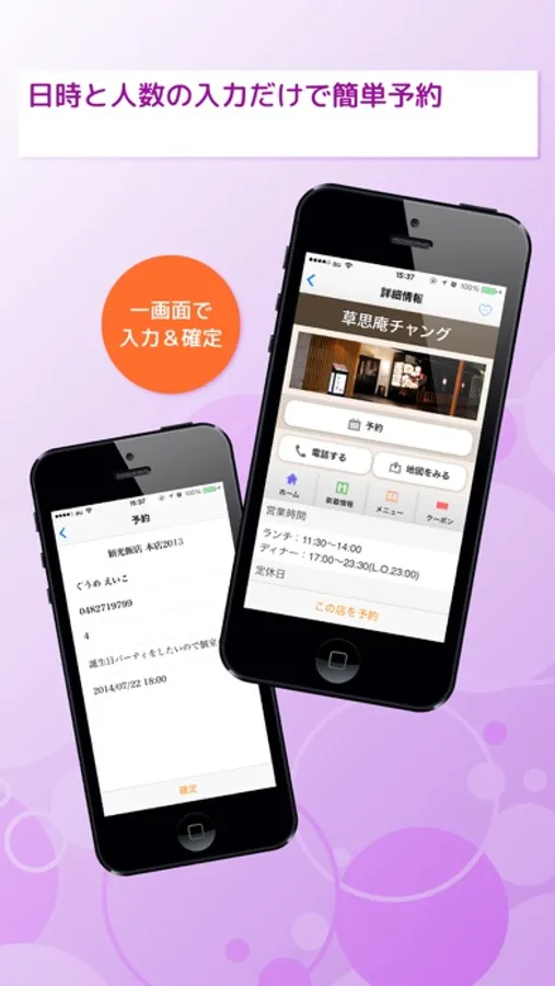 お店の画面から、時間と人数を入力するだけで簡単に予約できます。