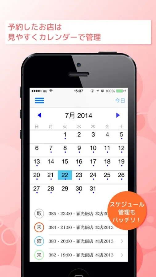 予約した日時などの条件や店舗をカレンダー履歴で管理できます。