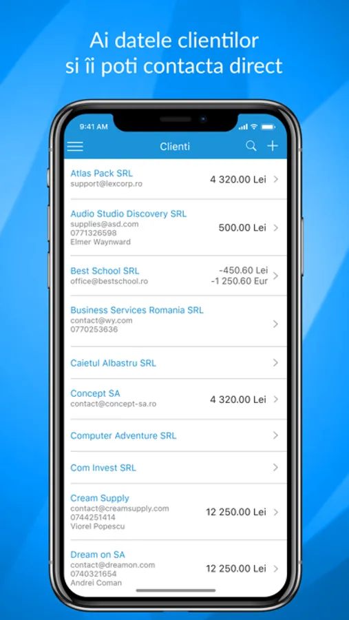 • Esti conectat - selectezi si contactezi clientii pe loc, prin email sau telefon