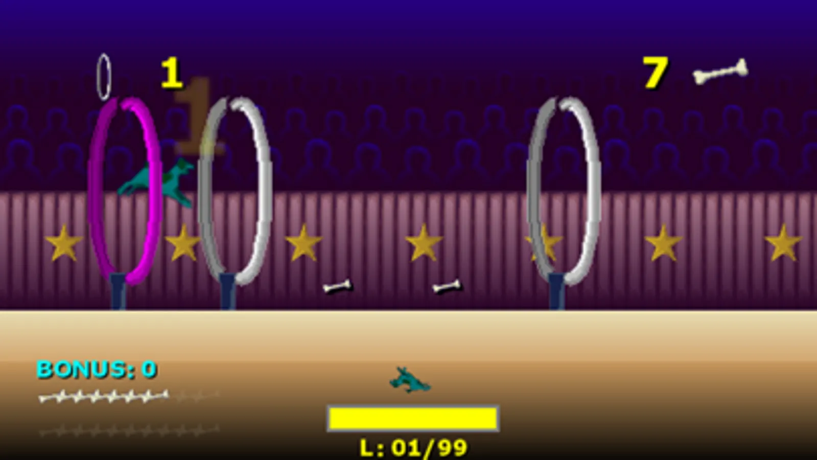 Tap anywhere on the screen to make the running dog jump over the obstacles.