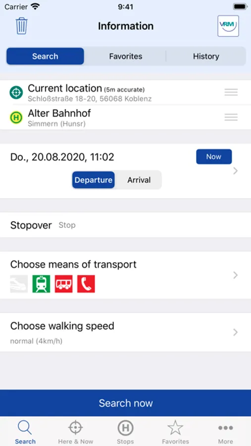 For all owners of iPhone, iPad and iPod touch, VRM offers a program (app) to access the up-to-date VRM timetable information. Thus, you will receive a simple and free navigation system for buses & trains in the Rhein-Mosel area.