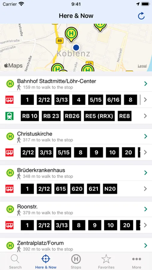 At a glance, the app offers an overview of all the departures from bus stops in your immediate vicinity. Thanks to the integrated map function, you will also be able to find the quickest route to the specified station.