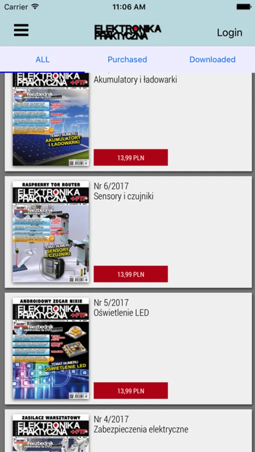 Aplikacja umożliwia kupowanie poszczególnych wydań "Elektroniki Praktycznej" w cenie 2,69 EUR