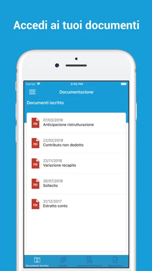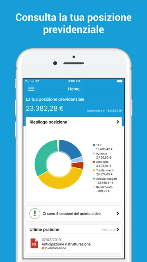 L’app permette di accedere all’area riservata per consultare la tua posizione contributiva ed autorizzare le disposizioni eseguite da area riservata web.