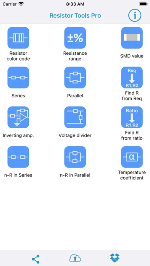 This app is a collection of resistor calculators. It is suitable for hobbyist or electronic engineer.