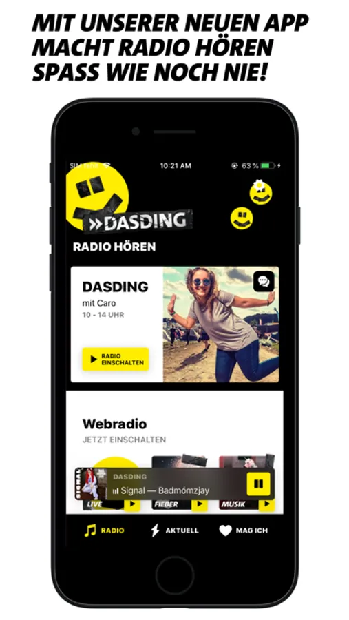 The DASDING app was developed by our audio lab so that you no longer have to wait for content and to offer you a completely new, modern radio experience. The app is constantly updated and runs on all your mobile devices, soon also on the Apple Watch and in the car. There are no ads, no in-app purchases, and no annoying paywalls. We always welcome questions, suggestions and general feedback on the DASDING app. Send us a message to the studio and we will take care of your request.