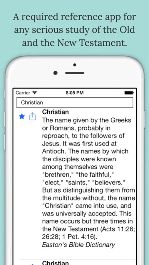With over 30.000 entries, The Bible Dictionary® will guide your understanding of the word of God and His son Jesus Christ. A required reference app for any serious study of the Old and the New Testament.
