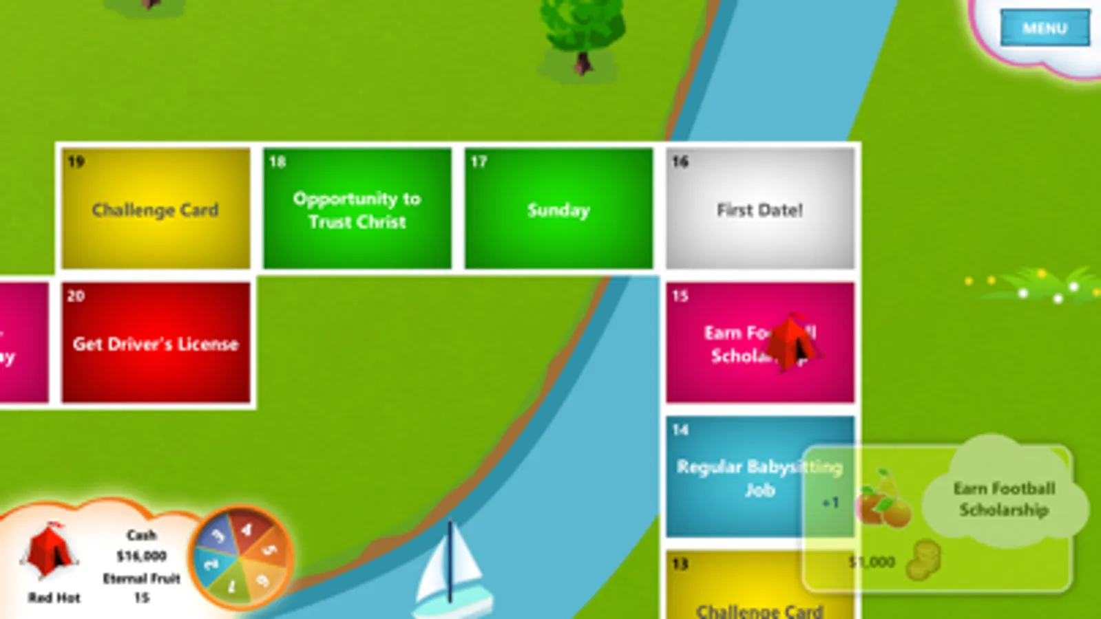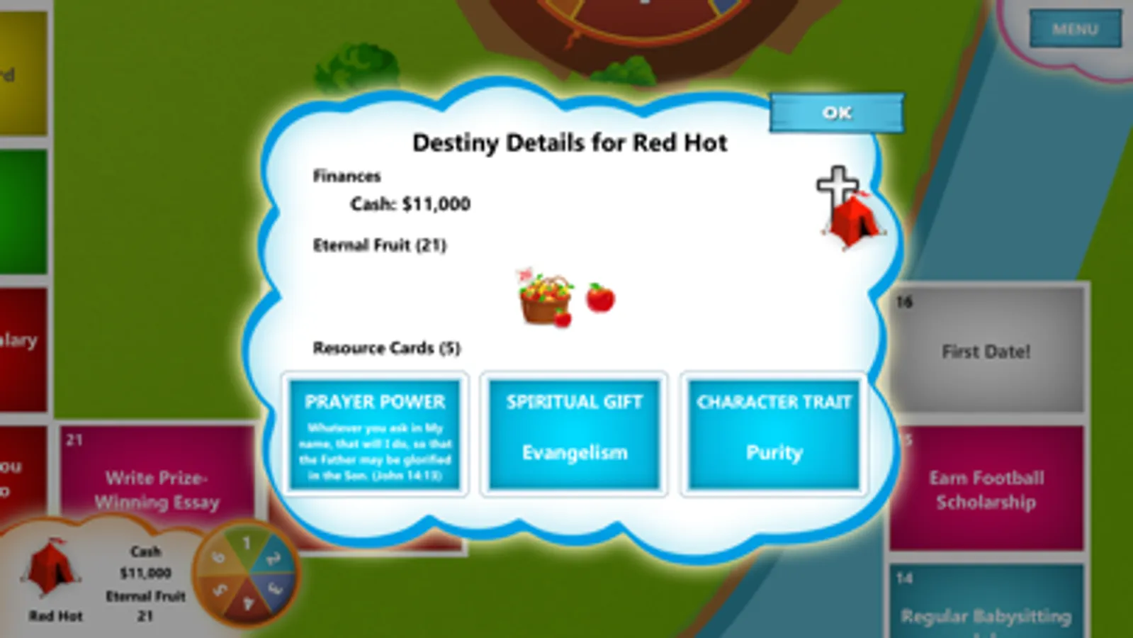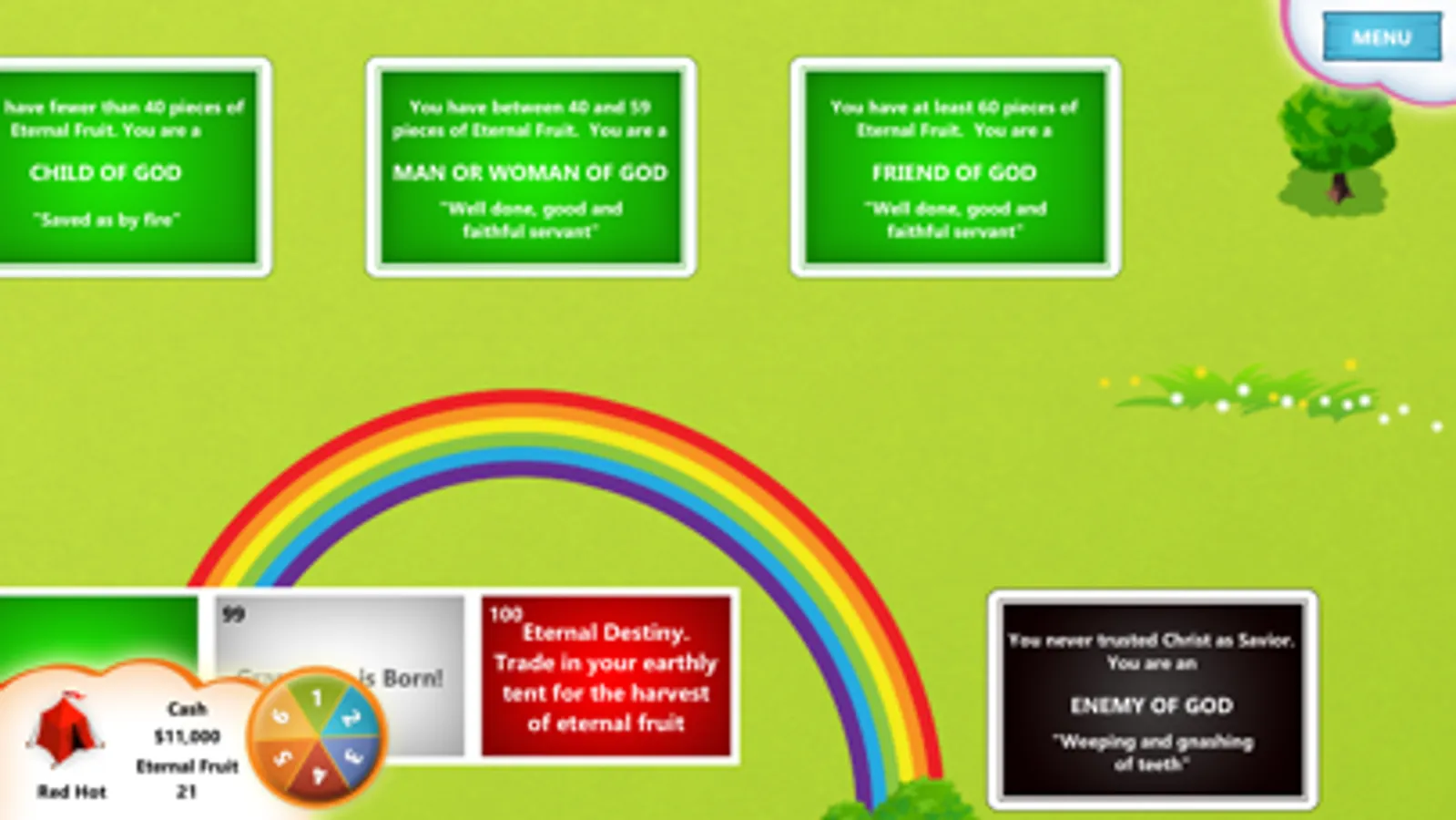 -Land on a ‘Sunday’ where you have a choice of attending church which gains you eternal fruit, or working overtime in hopes of getting a bonus.