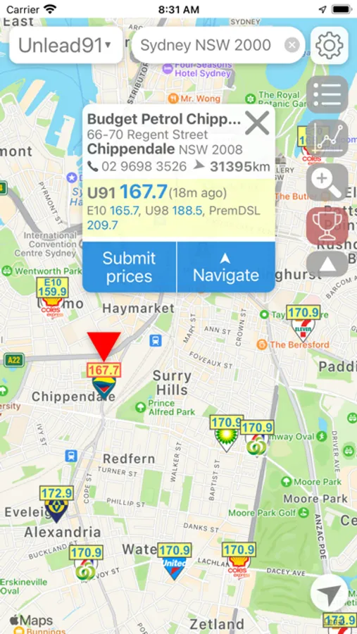 PetrolSpy has a highly comprehensive coverage of fuel station locations in Australia!