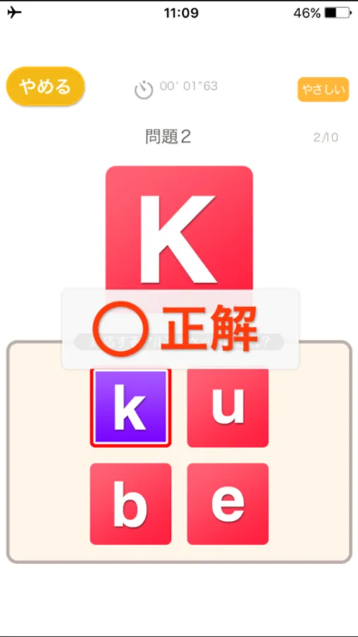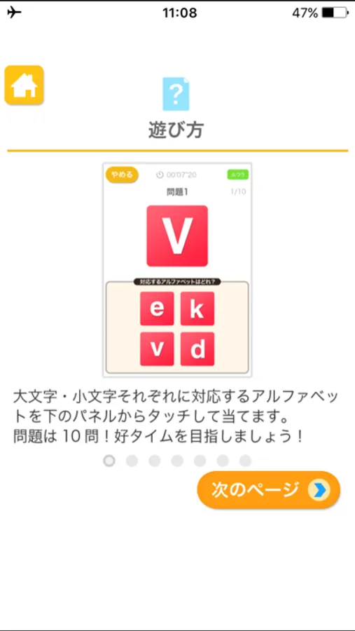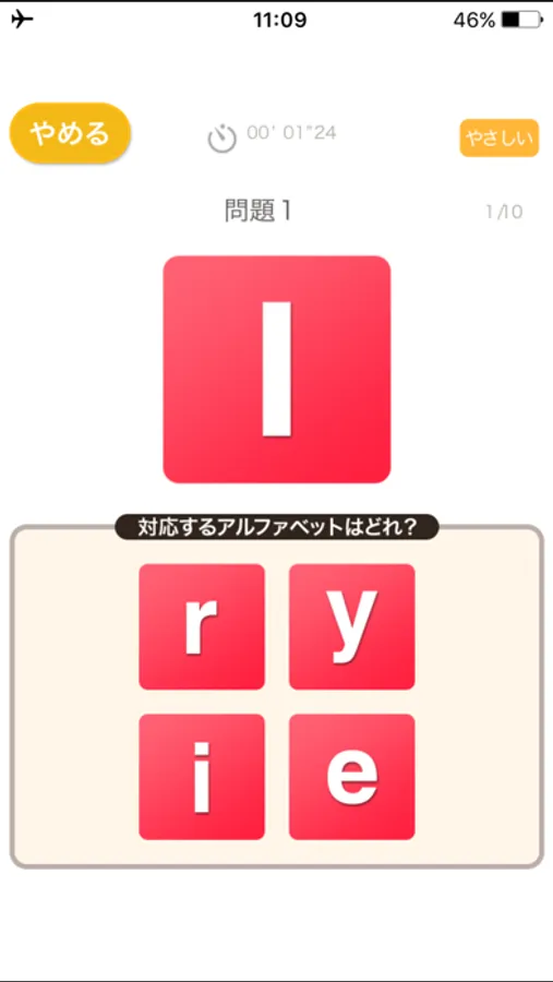 大文字・小文字それぞれに対応するアルファベットを表示されるパネルの中から当てるアプリです。