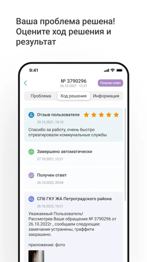 5. За статусом рассмотрения вашего сообщения можно следить прямо из приложения.