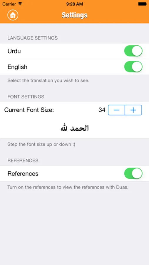 - Adjustable font size