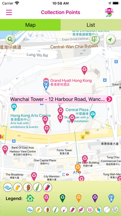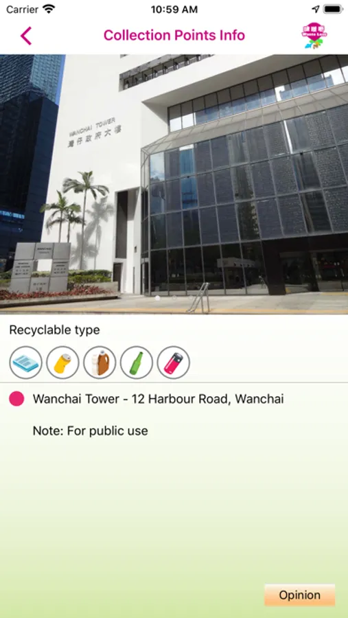 “Waste Less” is a mobile app developed by the Environmental Protection Department (EPD) of the Government of the Hong Kong Special Administrative Region. Its primary function is to show nearby collection points for recyclable items via a map on your device, with details, including photos, address, recyclable types, opening hours, etc.