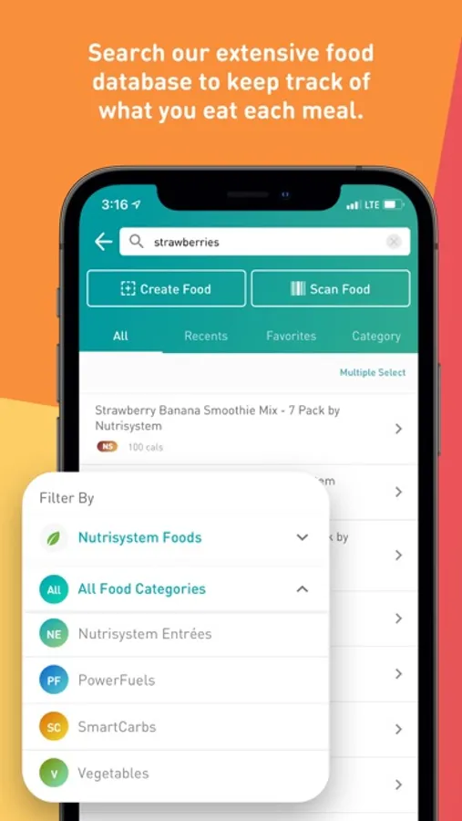 • Complete Nutrisystem® entrée database with barcode scanner for easy tracking. Plus, nutritional info for thousands of other foods!