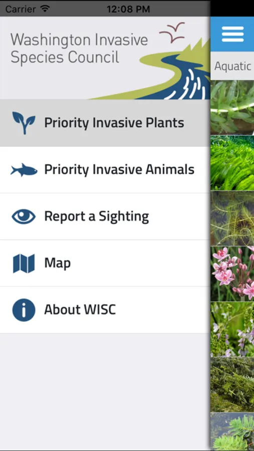 You can submit invasive species sighting reports directly with your mobile device where they occur. These sighting reports are submitted to Washington Invasive Species Council (WISC) staff and technical experts throughout the state to review and approve sighting reports. Sightings that are approved will be viewable directly through the app’s mapping tool. You can also learn more about priority invasive species in Washington with easy-to-understand descriptions and images. This mobile app is part of an integrated invasive species reporting and outreach campaign for WISC that also includes a website with an online reporting form.
