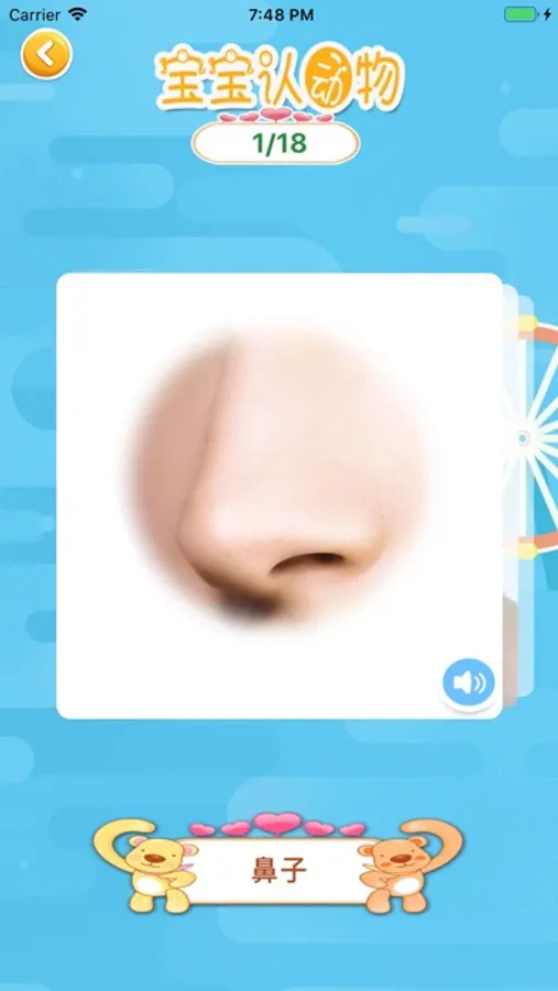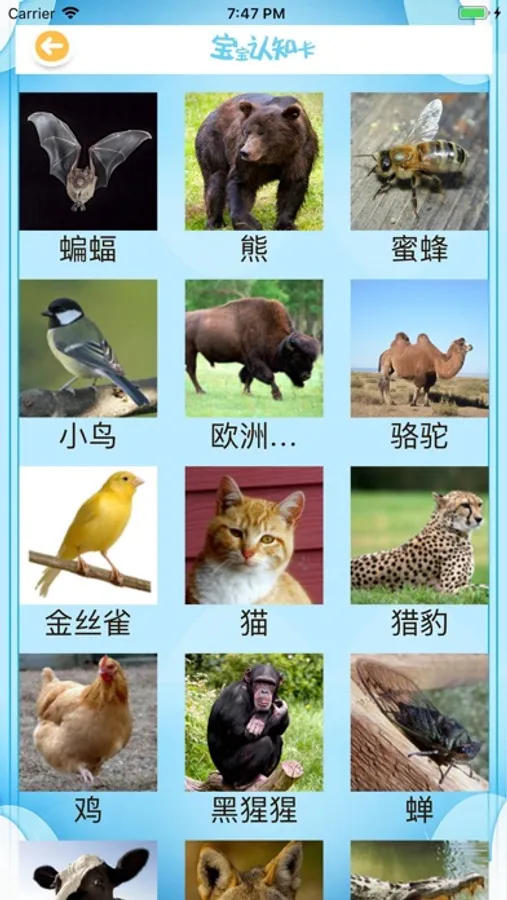 5、【识字卡】:通过实物图片,和动物的声音,让宝宝认识动物
