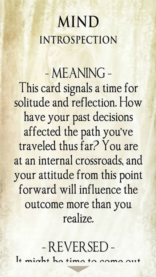 - 3 types of readings (1, 3 or 5 cards), including reversed cards meanings