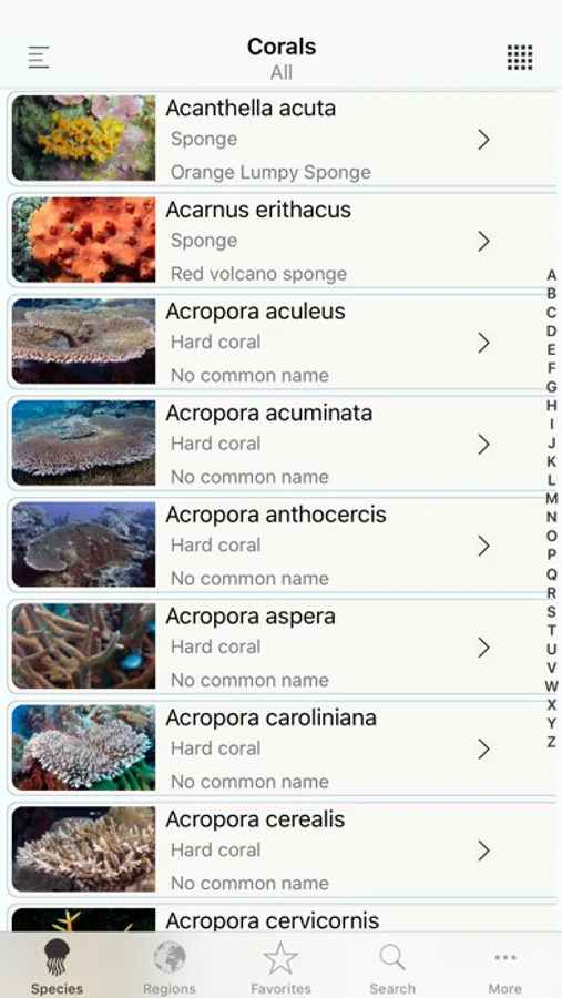 Reef Life Corals is a comprehensive marine life identification app, cover all species of type Corals (and then some).