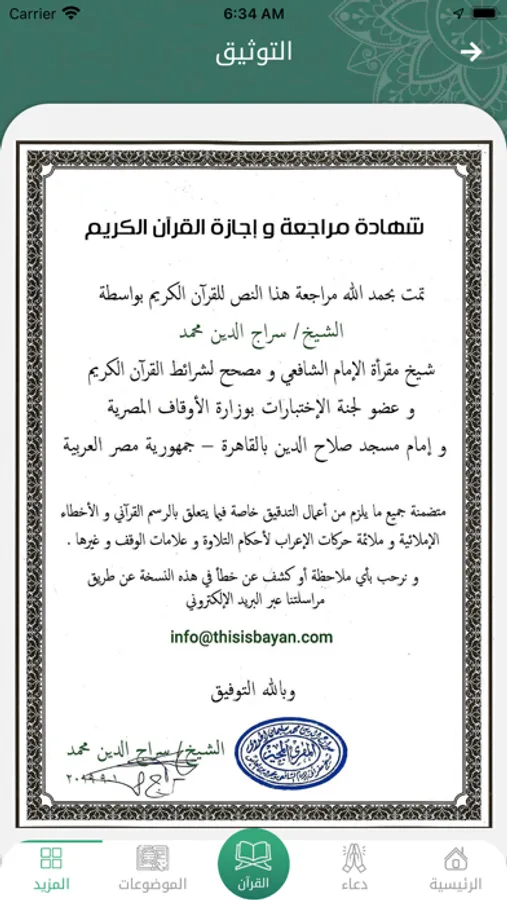 This is the first authenticated revised electronic Quran Kareem application; from one of most famous Azhar licensed reviser.