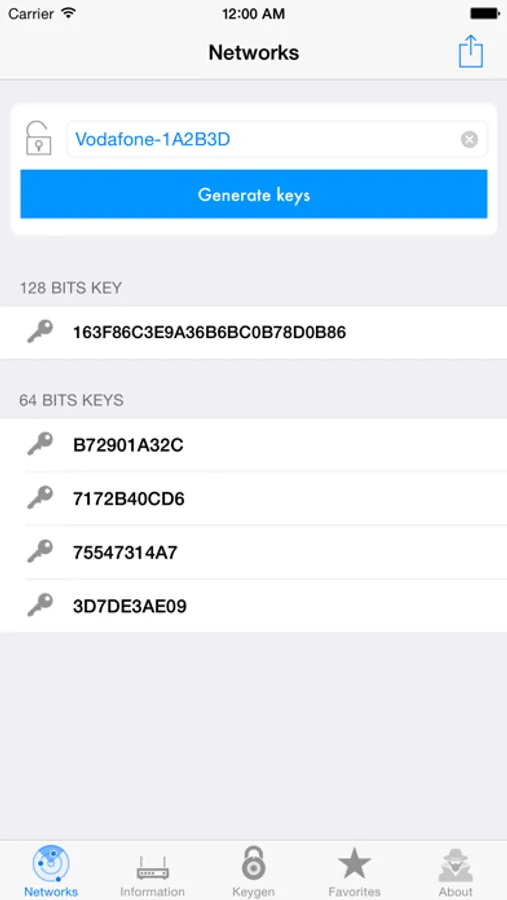 → In the Networks tab you can generate the keys for your network just by entering a word.