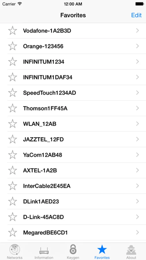 → In the Favorites tab may view information previously stored in the Networks tab.