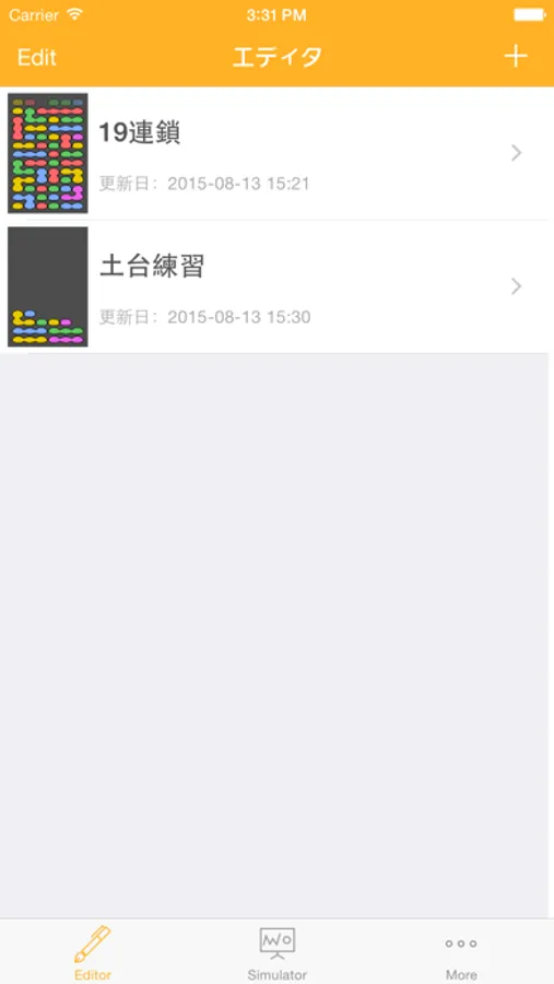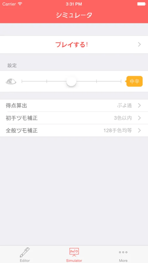 iPhone用の連鎖シミュレータアプリです。フィールド上にぷよを配置して連鎖を組んで、発生する得点やおじゃまぷよの数をシミュレートすることができます。