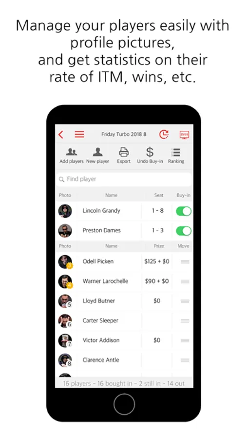 With Blinds Up, you can manage all aspects of your poker tournaments: