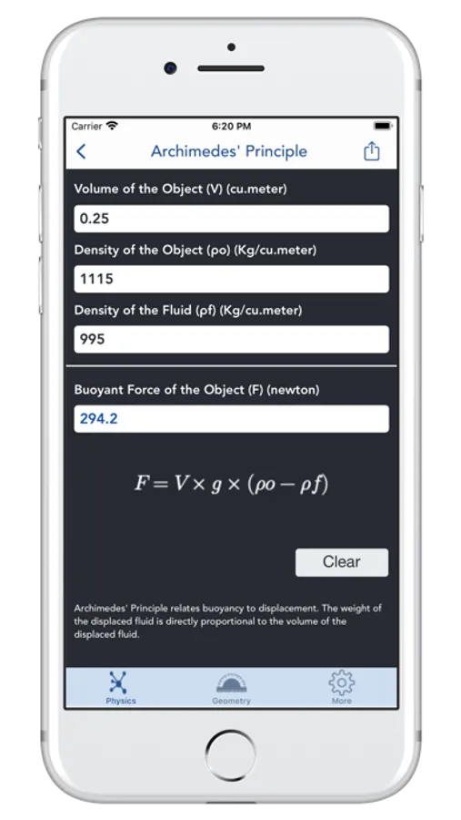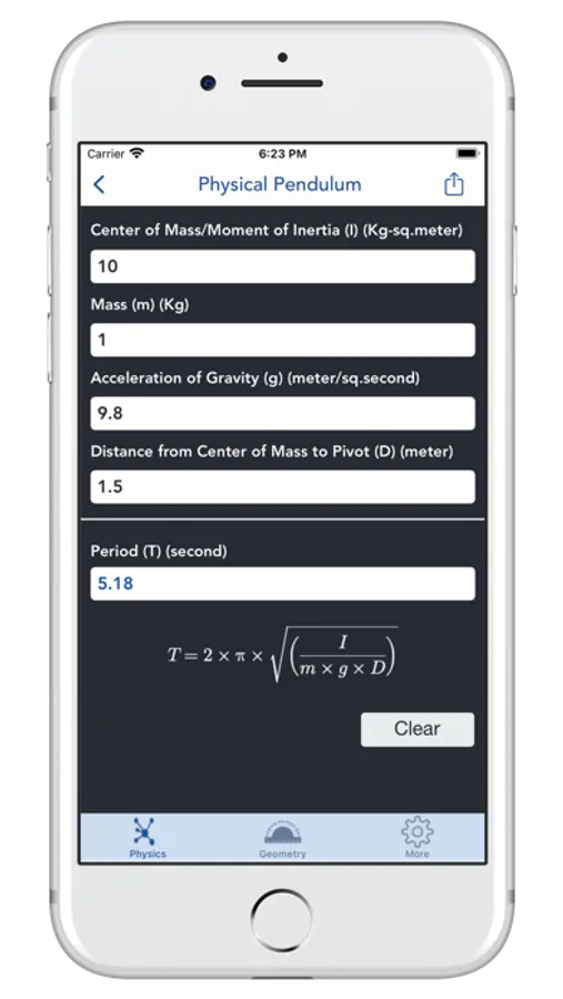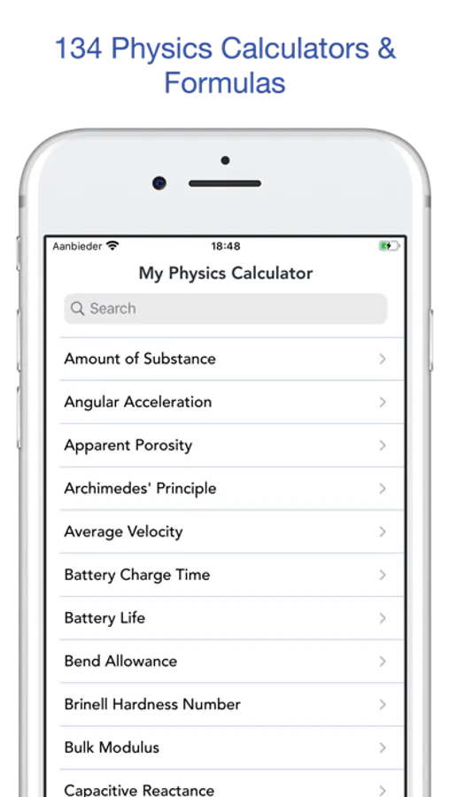 My Physics Calculator contains 134 Calculators, for different Physics and Engineering Parameters. Simple User Interface with immediate results. Formulas and Definitions are provided for each calculator..