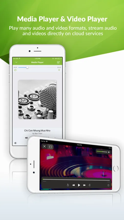 FSharing has a powerful music player and video player, they can play any music or video formats and supports streaming on any cloud servers.