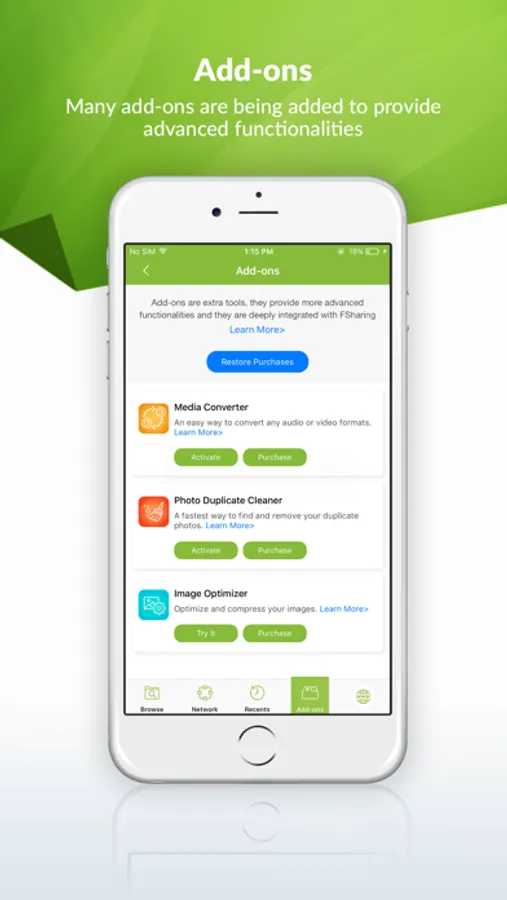 FSharing comes with add-ons, they provide more advanced functionalities. Each add-ons has a different role but they are deeply integrated with the app and they make FSharing more powerful.