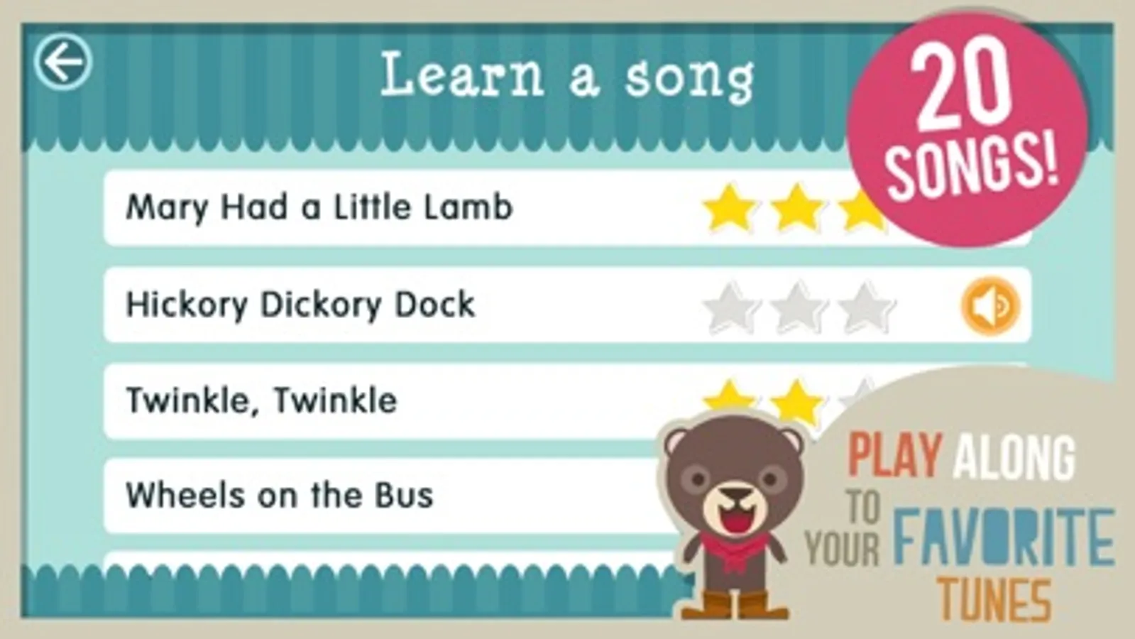 Learn how to play any song from the music library with the Tutorial Mode. Designed for beginners, it shows where each note is on the keyboard and keeps record of your personal best.