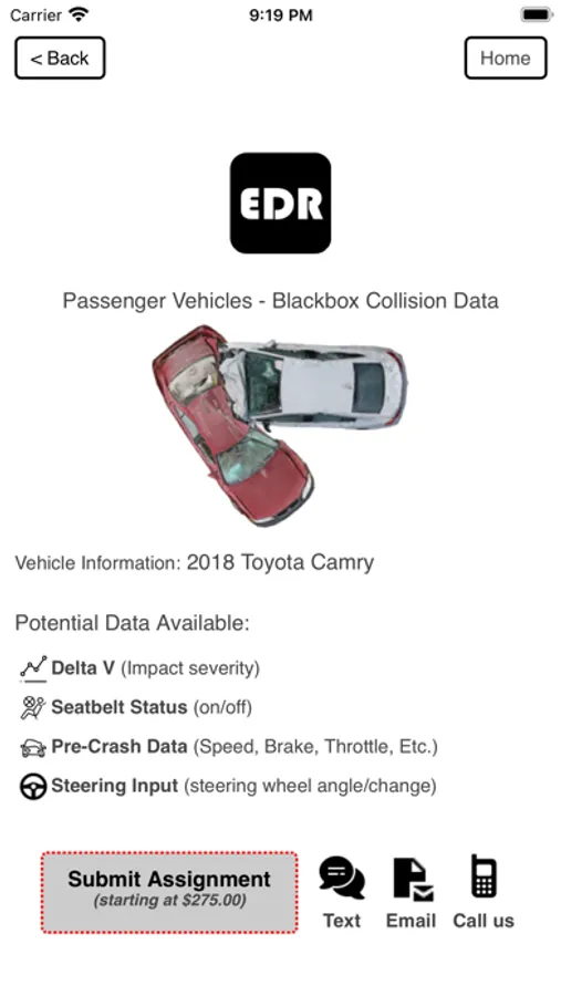 The BlackboxEDR App was created to maintain the latest EDR coverage in the ever-changing automotive technology world and create an easy way to access that data for both passenger and commercial vehicles. Downloading and using our App allows you instant access to our commercial vehicle Vin Decoder, Passenger Vehicle Search, Assignment Submission, and direct contact information to reach us at any time.