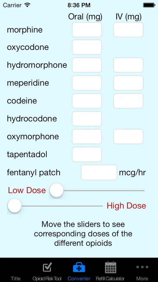 An app for fellows and residents rotating through Dr. Bernstein's rotation. It contains an opioid conversion calculator, 30 day refill calculator, opioid metabolite reference, and prescribing checklist.