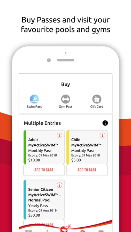 Check in and check out of a swim or gym facility, by scanning the QR code on your mobile phone screen (after buying an entry pass).