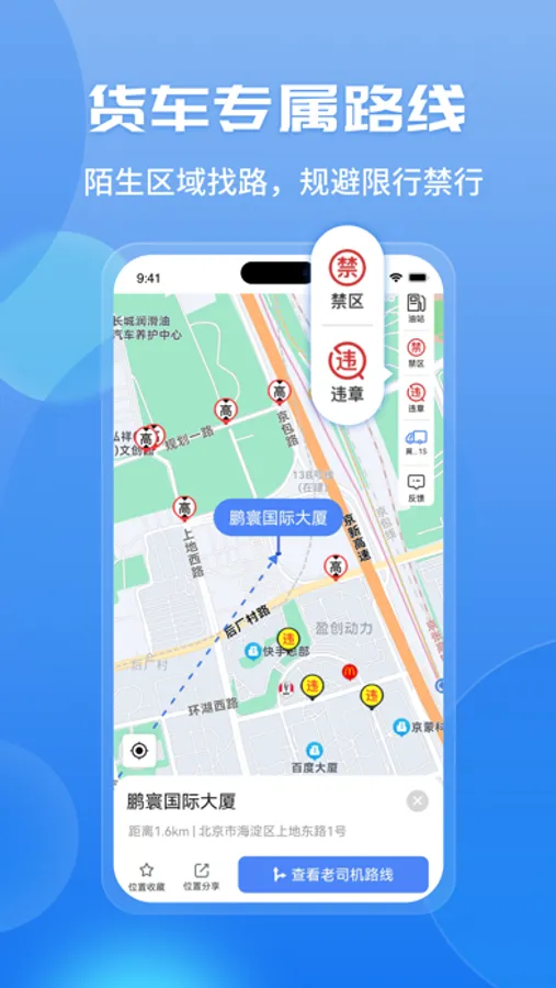 - 导航(货车导航):专业货车导航,一键规避限行,历史轨迹路线直接导航再走一次