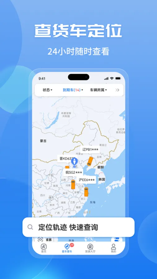 - 查车(行车动态):北斗车机数据,实时位置查询,查看货车轨迹