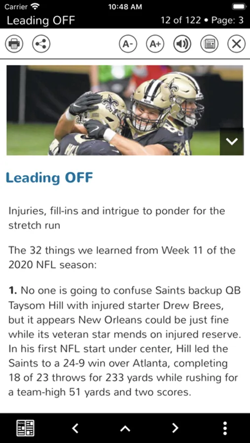 • SHAREABLE CONTENT, ACCESSIBLE WHERE AND WHEN YOU ARE: Print, email, clip, or share content with friends who share your passion for your team. Download editions so you can read stories even when you don’t have an internet connection. Need to go hands-free to cheer for your team? The read aloud feature lets you have articles read to you.