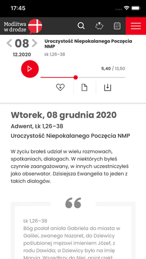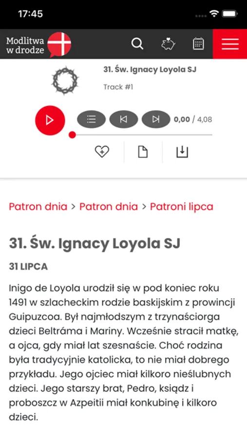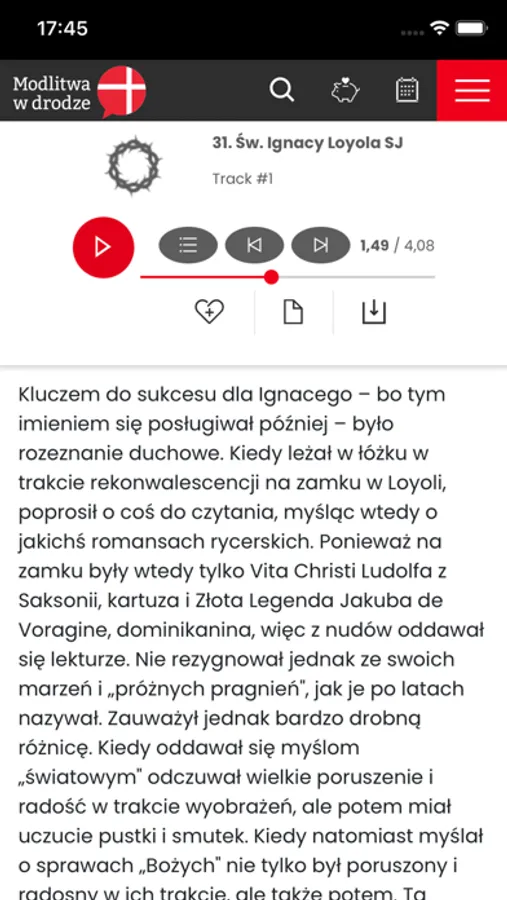 Modlitwa w drodze to codzienne kilku minutowe medytacje w formie dźwiękowej i tekstowej.