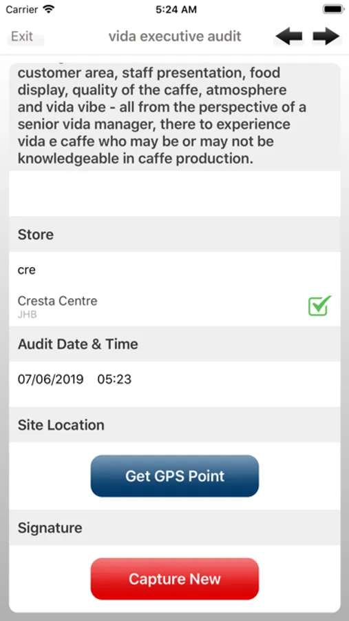 Capture photos, video, audio, barcodes and even signatures during an audit along with exact location where the audit was completed.