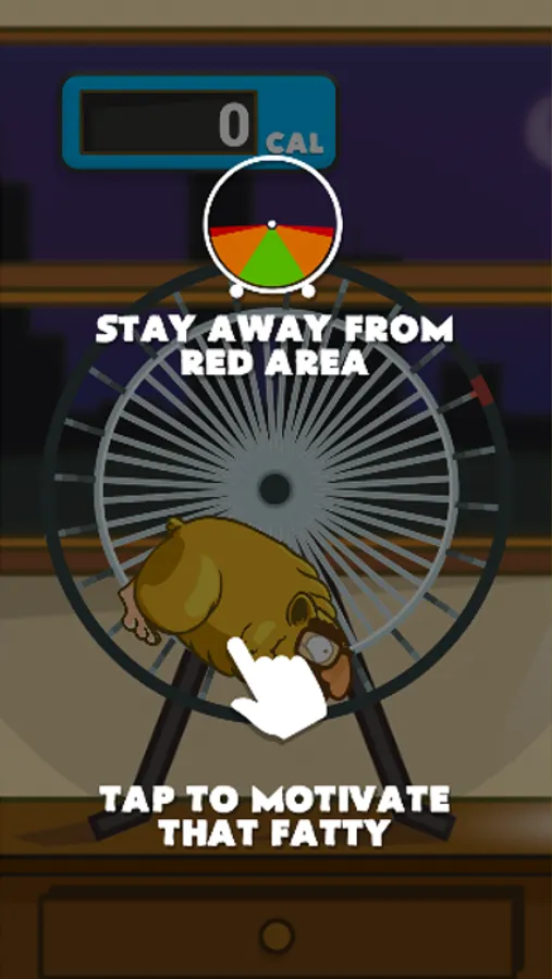 Motivate him to burn calories by running in a hamster wheel! You do this by taping your finger repeatedly! Each time you tap fat hamster moves forward. Don't make him run too fast or too slow because he will fall out. It's fun and easy to play, but hard to fully master. Try to burn as much calories as you can and share your score with your friends. See who's better in burning calories.