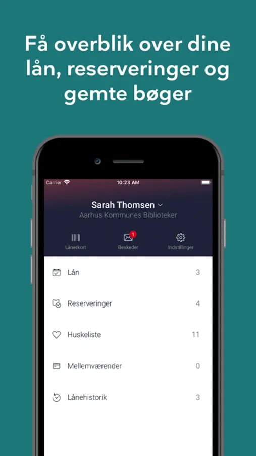 - Få overblik over dine lån, reserveringer og mellemværender.