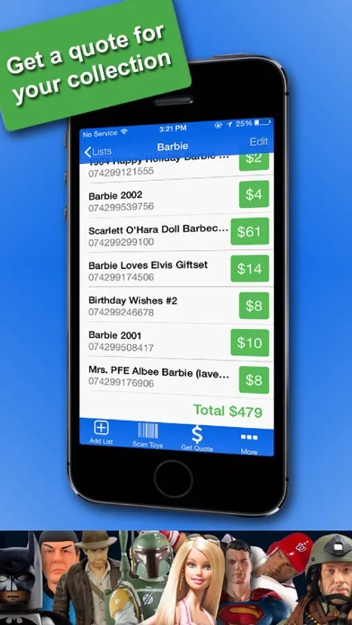 Just scan your barcodes and get quotes for your collection with Sell My Toys! Create and manage lists of your toy collection by scanning the bar codes on the packaging of your modern toys. Submit this list to Brian’s Toys to receive an offer. If you have vintage figures from 1980s or earlier, you will need to e=mail pictures to buying@brianstoys.com. Prices for vintage items depend heavily on condition.