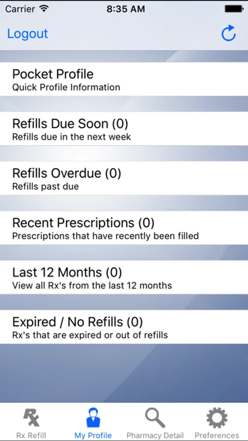 • Access a pocket profile--a summary of your recent prescriptions, prescribing physicians, allergy history and more
