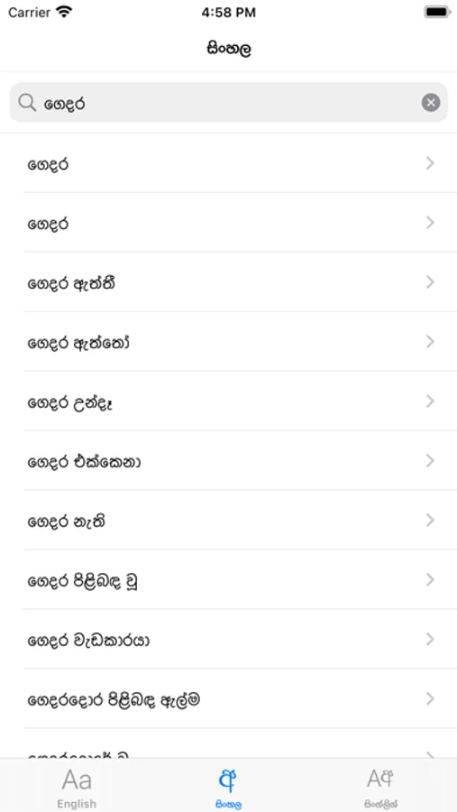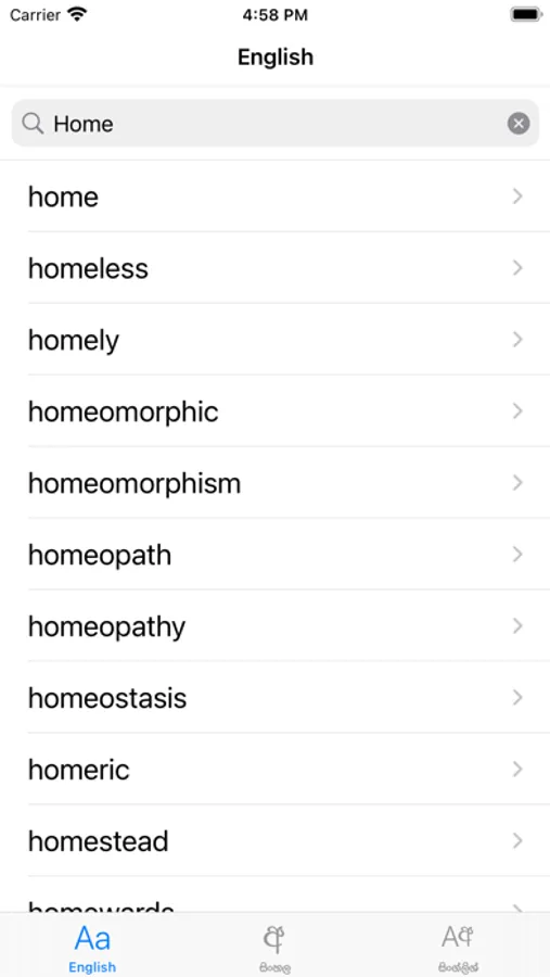english - sinhala and sinhala - english Dictionary application, the application contains more than 40000 english words and sinhala meanings.users can easily type sinhala using automatic transliteration(singlish to sinhala unicode converter) and search for english word and users can type sinhala unicode text using automatic transliteration and copy and paste to another application or to a web page.