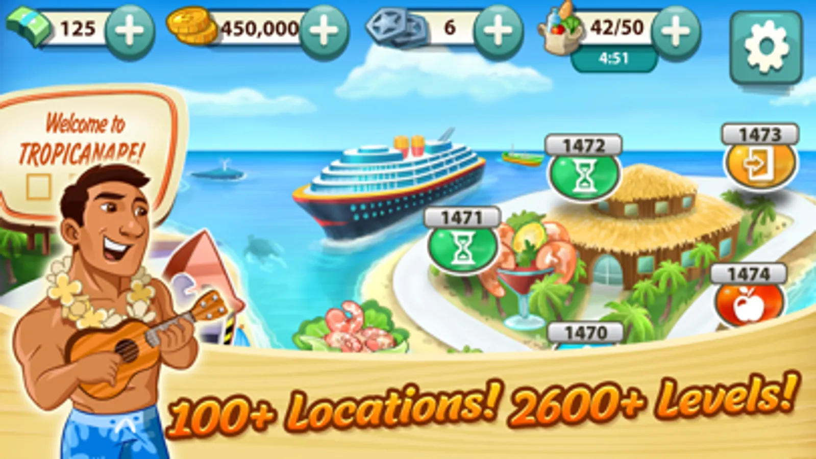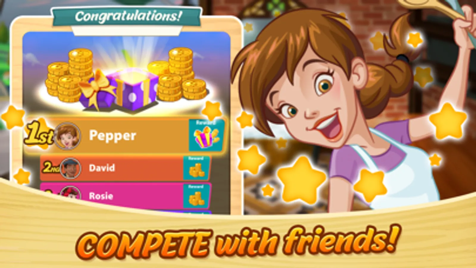 Meet unique customers, serve and delight them with your delicious recipes, and earn Coins and Tips.