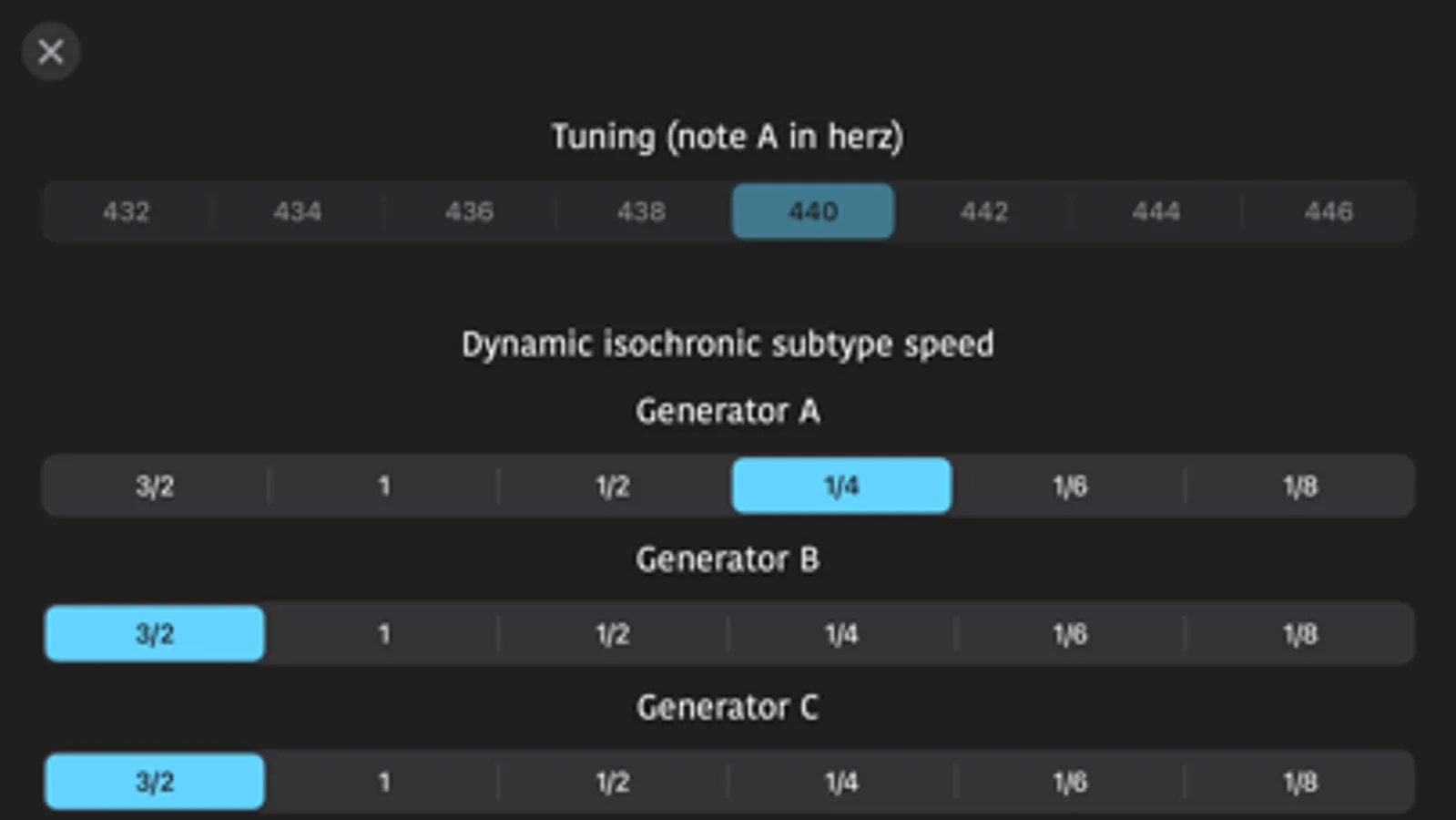 - 4 different isochronic beats base sound - mono, noise, binaural, monaural