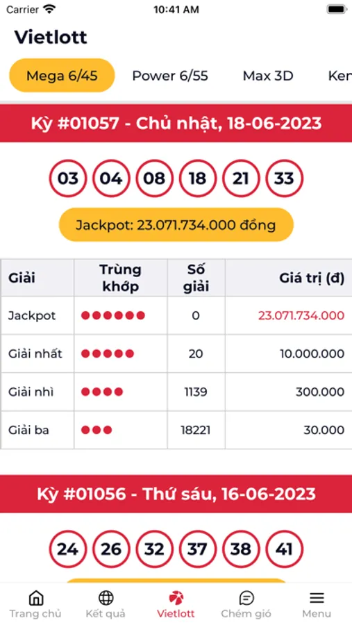 Kết quả xổ số Vietlott Mega 6/45 thứ 4,6, chủ nhật hàng tuần